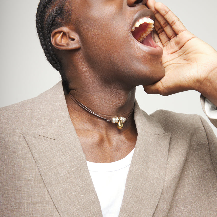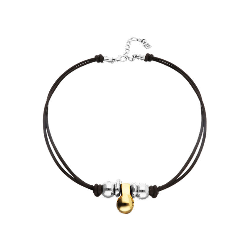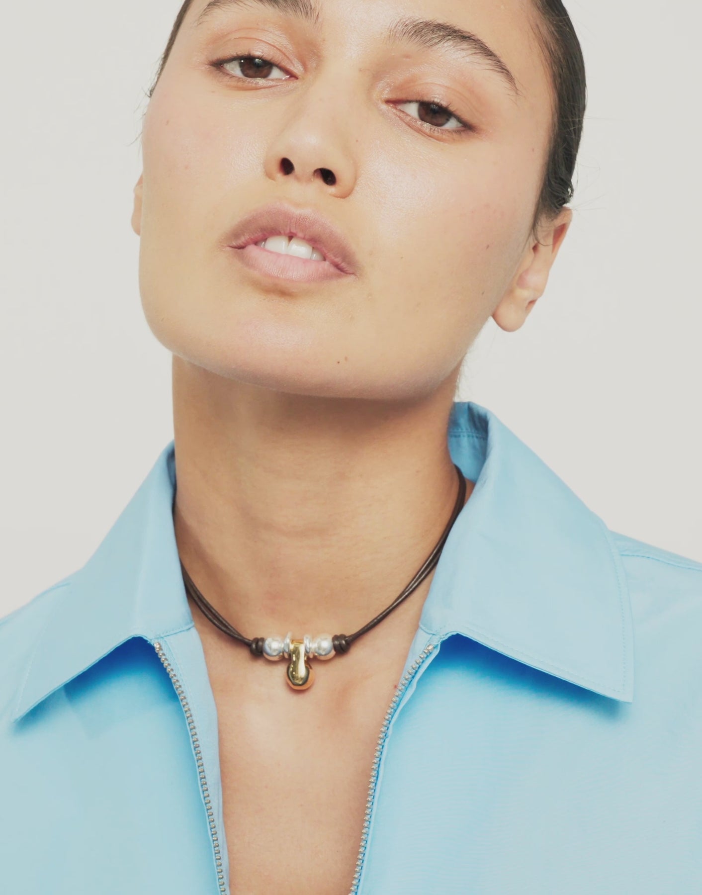 Regular price $279.00Keep grounded with the Gravity necklace featuring a double strand leather necklace with two sterling silver plated alloy ball pendants and one central 18ct gold plated pendant.