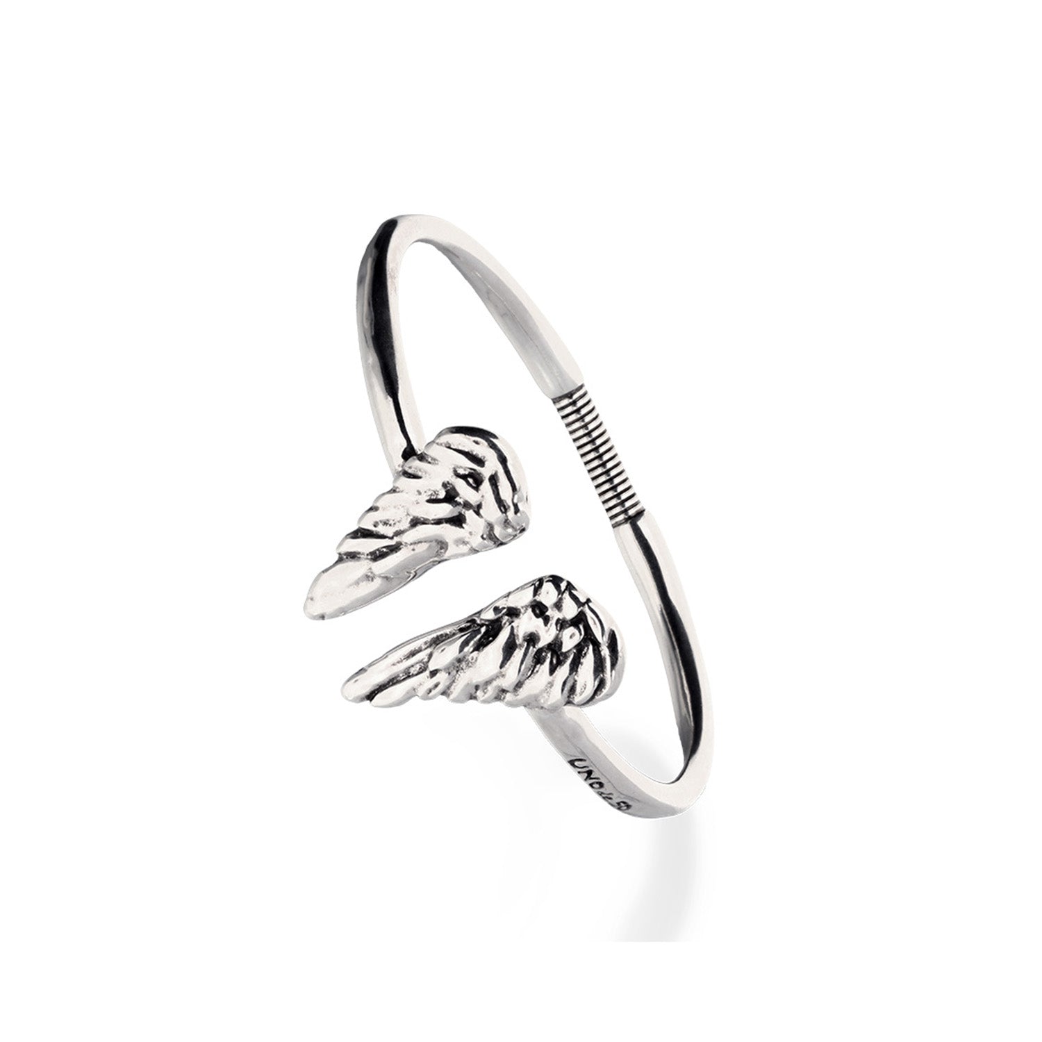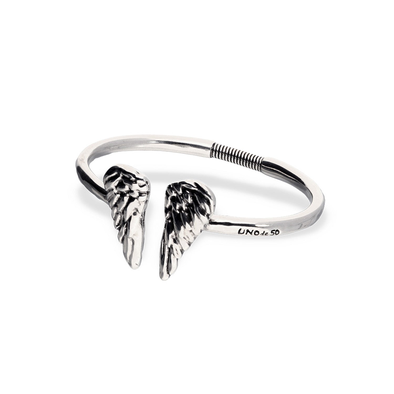 Regular price $235.00Rigid open bracelet with spring in alloy plated in sterling silver with wing detail. Celebrate your invincible side, show you have the power to overcome obstacles.
