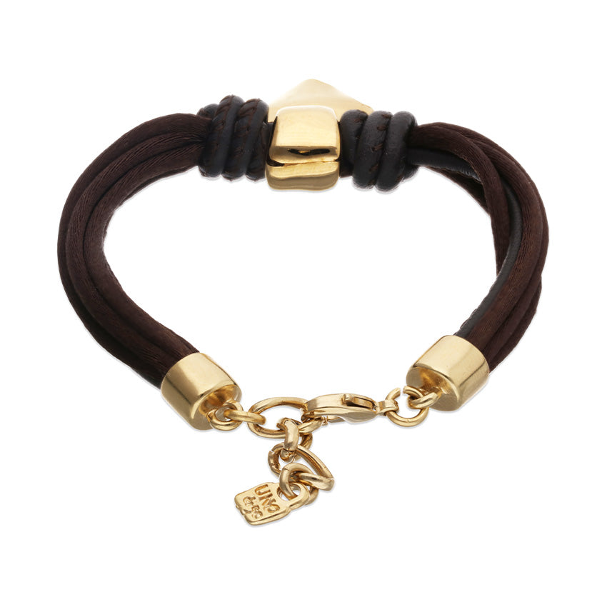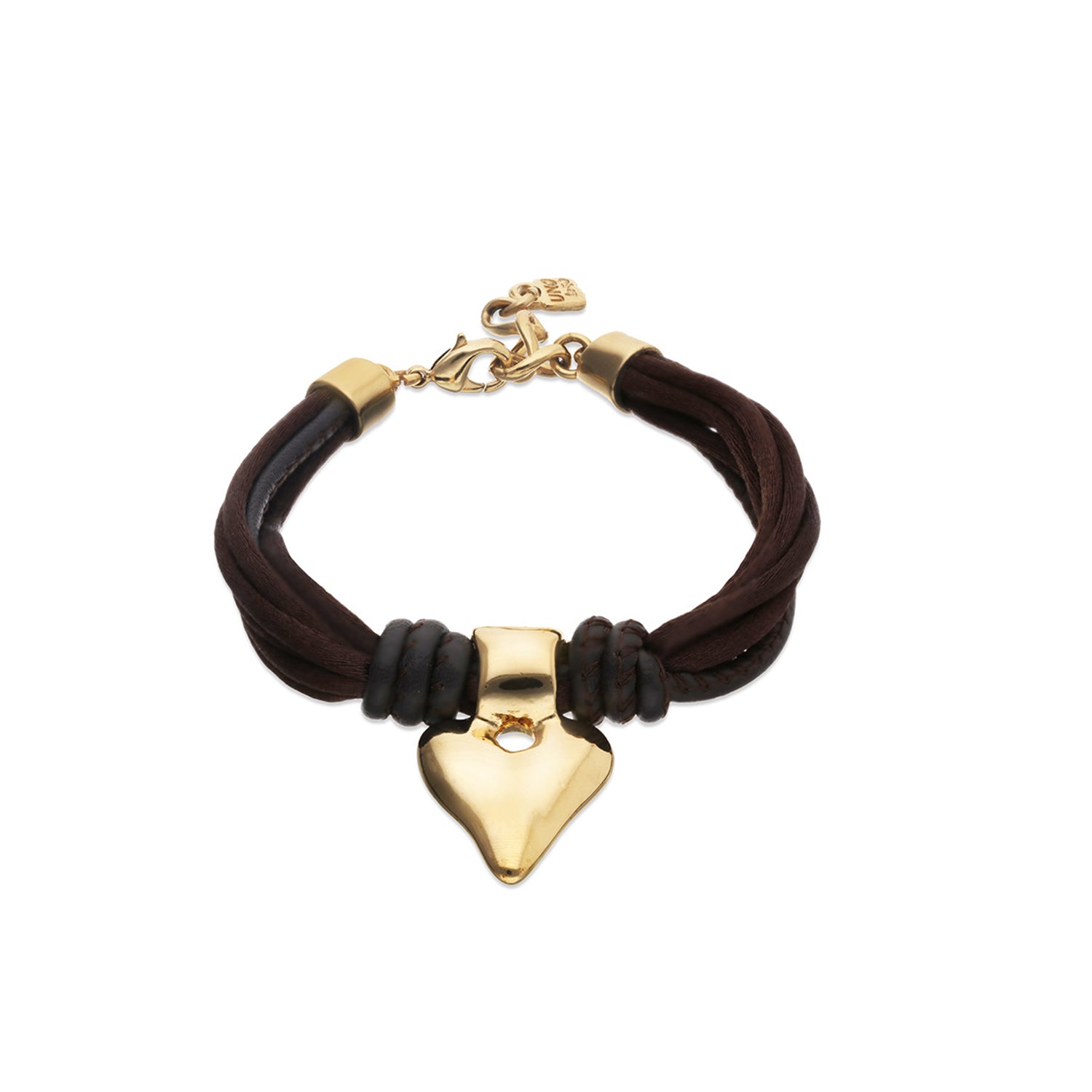 Be kind hearted. The Beat Thread Bracelet features a mix of brown leather and silken thread with a 18ct gold plated alloy heart.