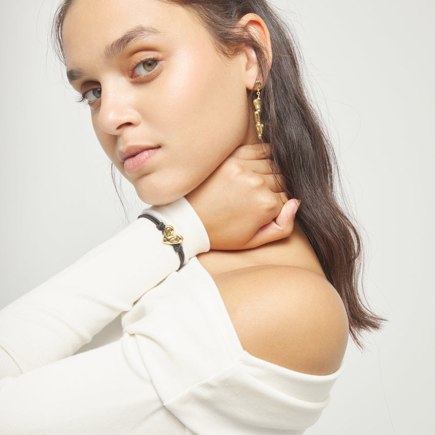 Regular price $159.00Follow your heart. The Beat Stretch Bracelet features a double strand of black stretch material with a small 18ct gold plated alloy heart.