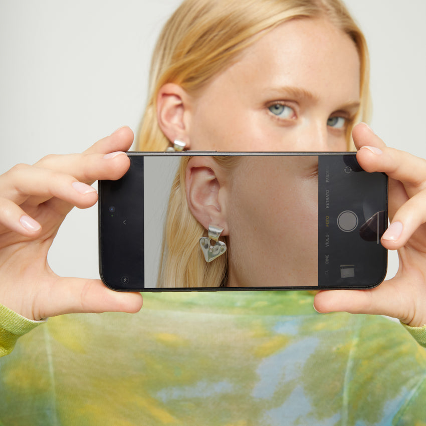 Regular price $185.00A bold heart design. The Beat Drop Stud Earrings feature a sterling silver plated alloy, organically styled heart.