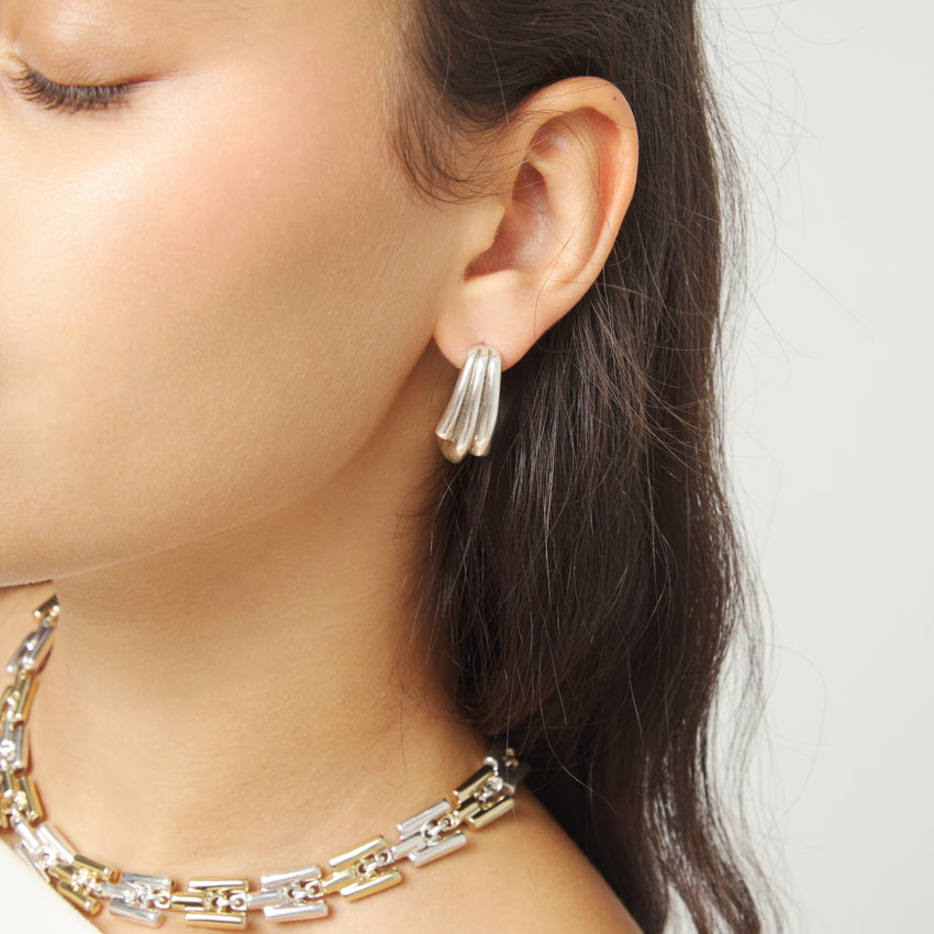 Regular price $199.00Organic sterling silver plated alloy curved earrings represent a link to your origin.