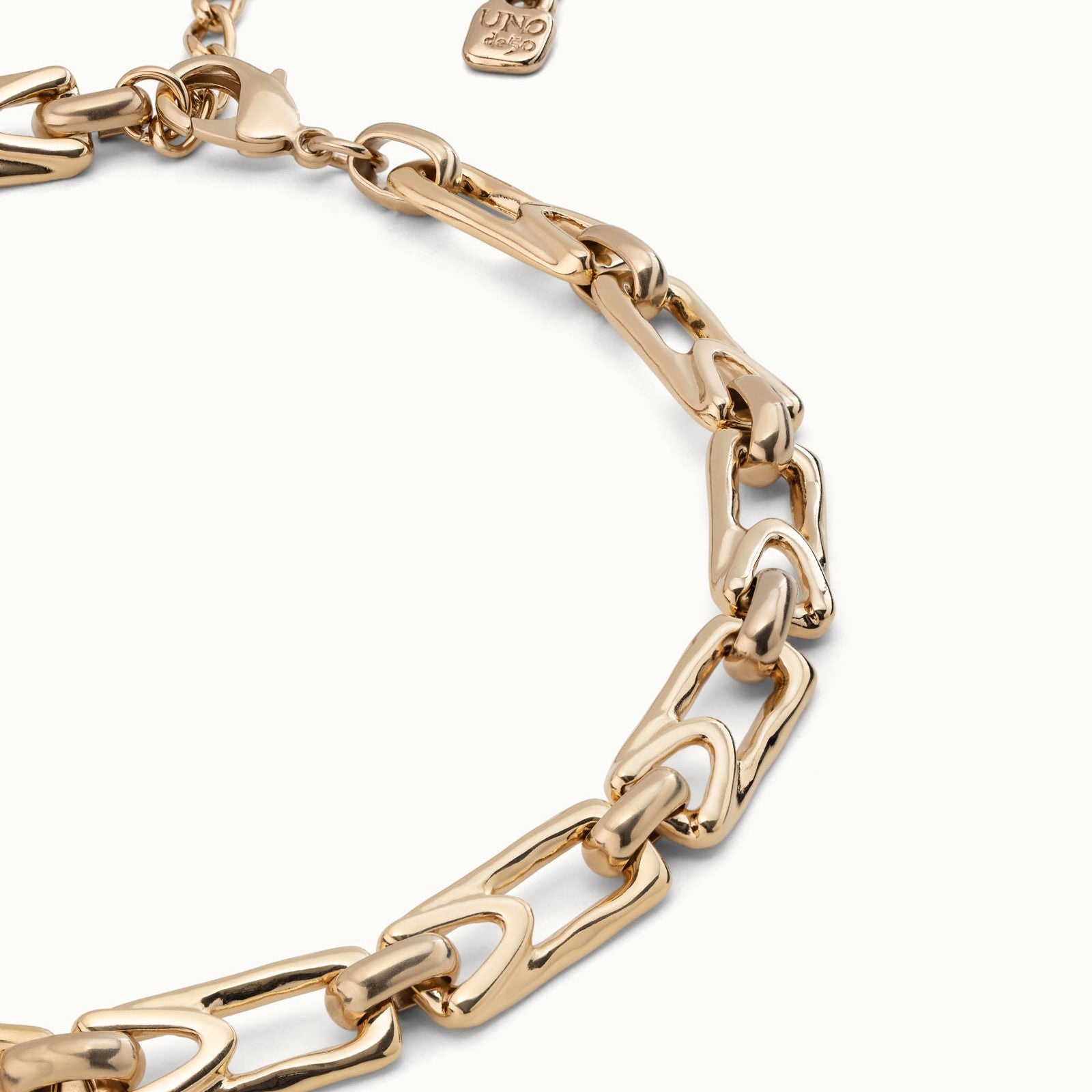 Regular price $635.00Pieces of organic geometry add courage and give life to the Brave collection with this design made of rectangular 18k gold plated link design. The necklace has an adjustable carabiner clasp. Creativity, generosity and abundance.